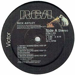 RICK ASTLEY / NEVER GONNA GIVE YOU UP (米原盤/12"MIX) [◎中古レア盤◎お宝!内容違いのUS原盤!特大ヒット!] [US/12"/RCA]